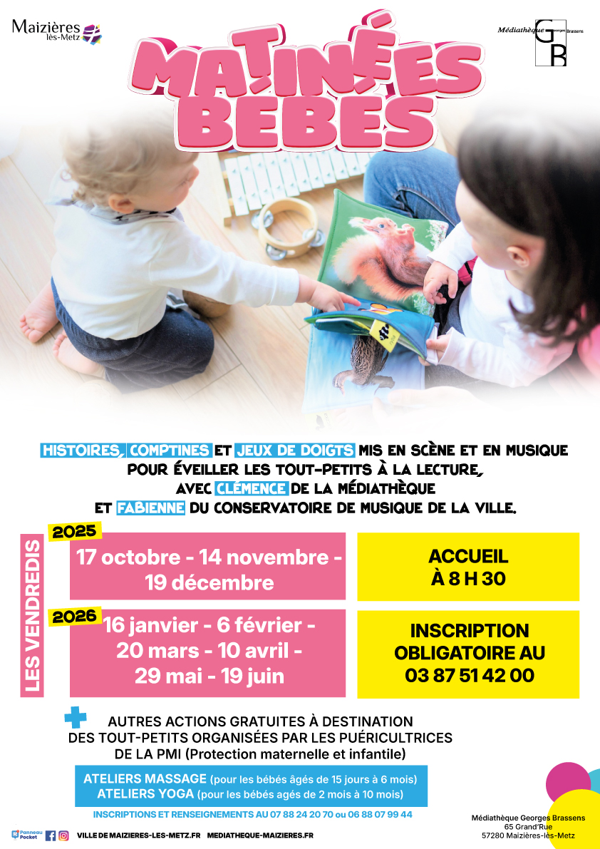 Un vendredi par mois, Clémence de la Médiathèque Georges Brassens et Fabienne du Conservatoire de Maizières-lès-Metz accueillent les bébés et les jeunes enfants avec leurs parents pour une séance d’éveil au livre et à la musique.