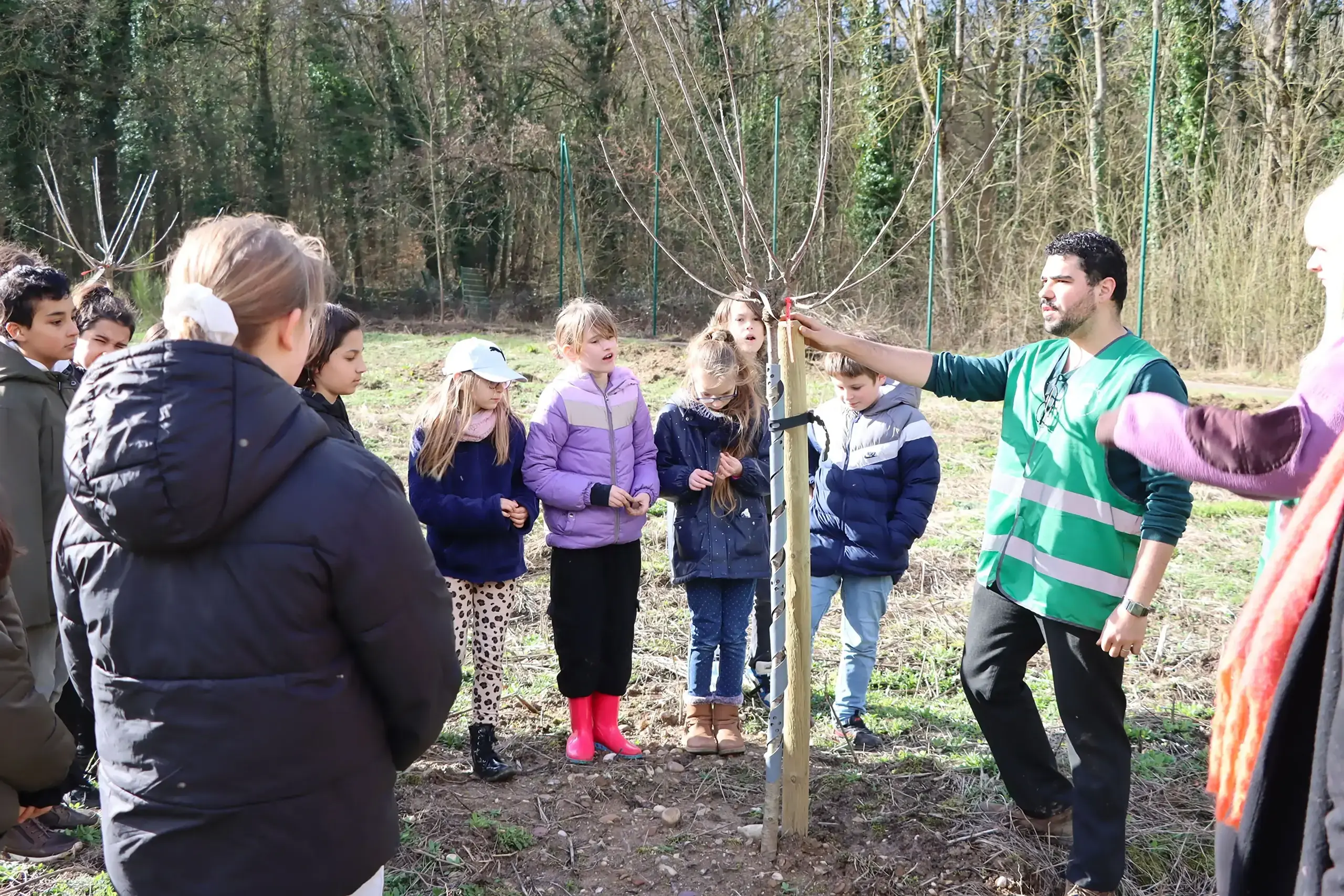 À l’arrière du gymnase Bommersheim, dans le quartier des Écarts, un jardin pédagogique a été mis en place fin de l’année 2023. L’objectif de ce verger est de favoriser la biodiversité sur le terrain.